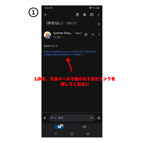 - Googleカレンダーから送られたリンクをクリックして、**「Zoomミーティングに参加」**を選択します。